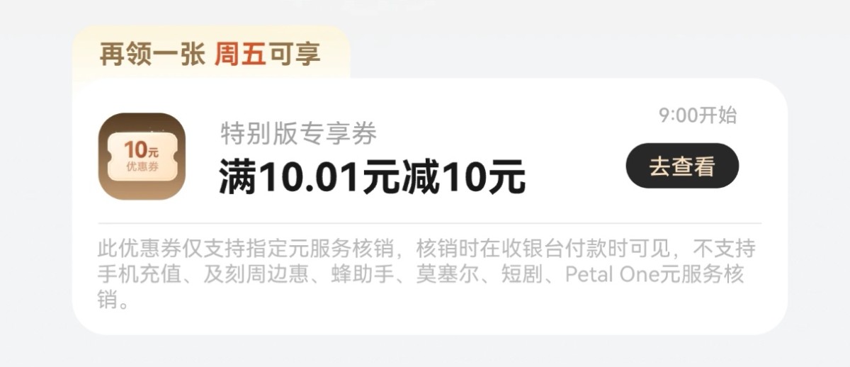 【鸿蒙有礼】特别版专享券,满10.01减10